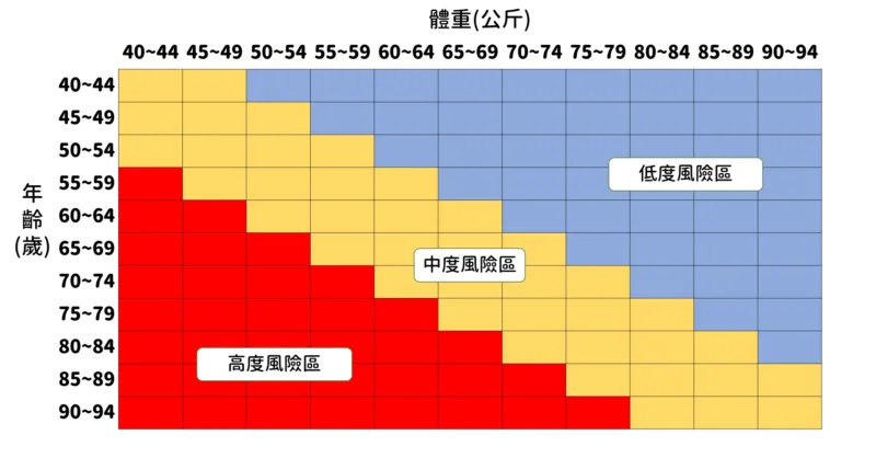 不同年齡段的骨質密度有不同標準,大家可以用『台灣人骨質疏鬆症自我評量表 Osteoporosis Self-assessment tool for Taiwanese (OSTAi) 』迅速做個風險判斷: